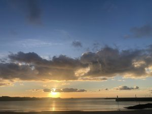 Ici, un géant soleil couchant embrase toute la baie de Saint Brieuc.